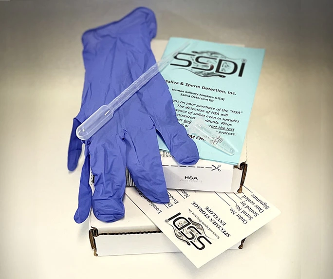 - One (1) single use HSA (human salivary amylase) test cartridge to test any stain for the presence of human saliva, moisture desiccant, and pipet.