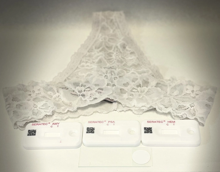 - Semen sperm saliva detection testing includes a visual examination and detection of seminal fluid, saliva, sperm, and human blood (when warranted) on one undergarment or nonundergarment sample.